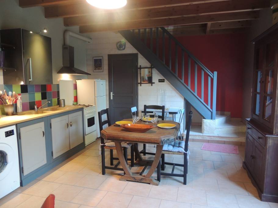 Le gîte, sur deux niveaux, possède une grande chambre à l'étage composé d'un grand lit (160 * 200) et d'un lit simple (90*190).